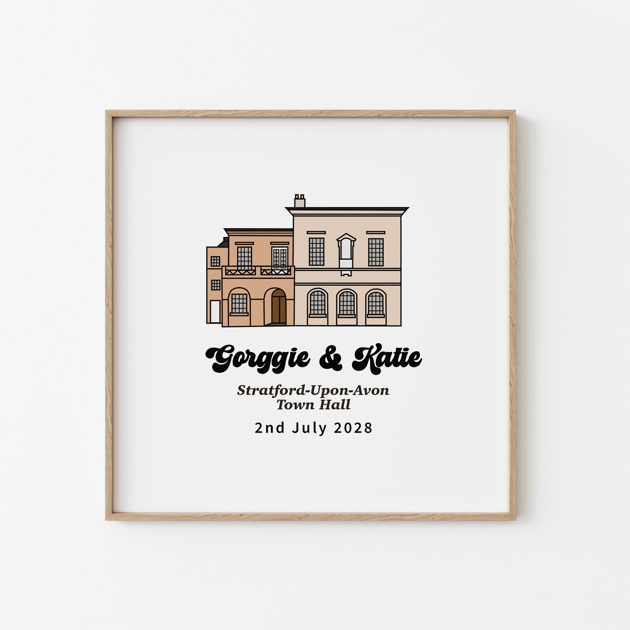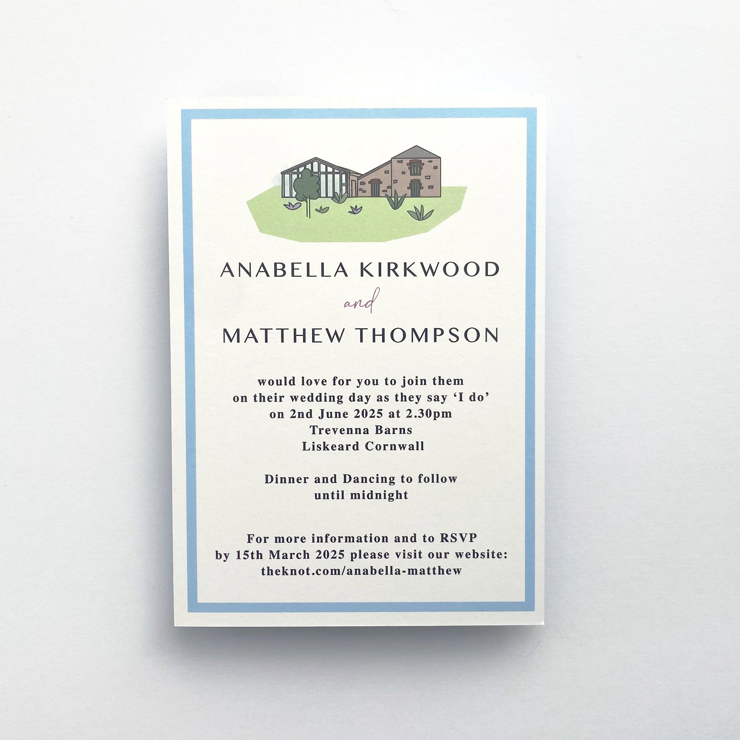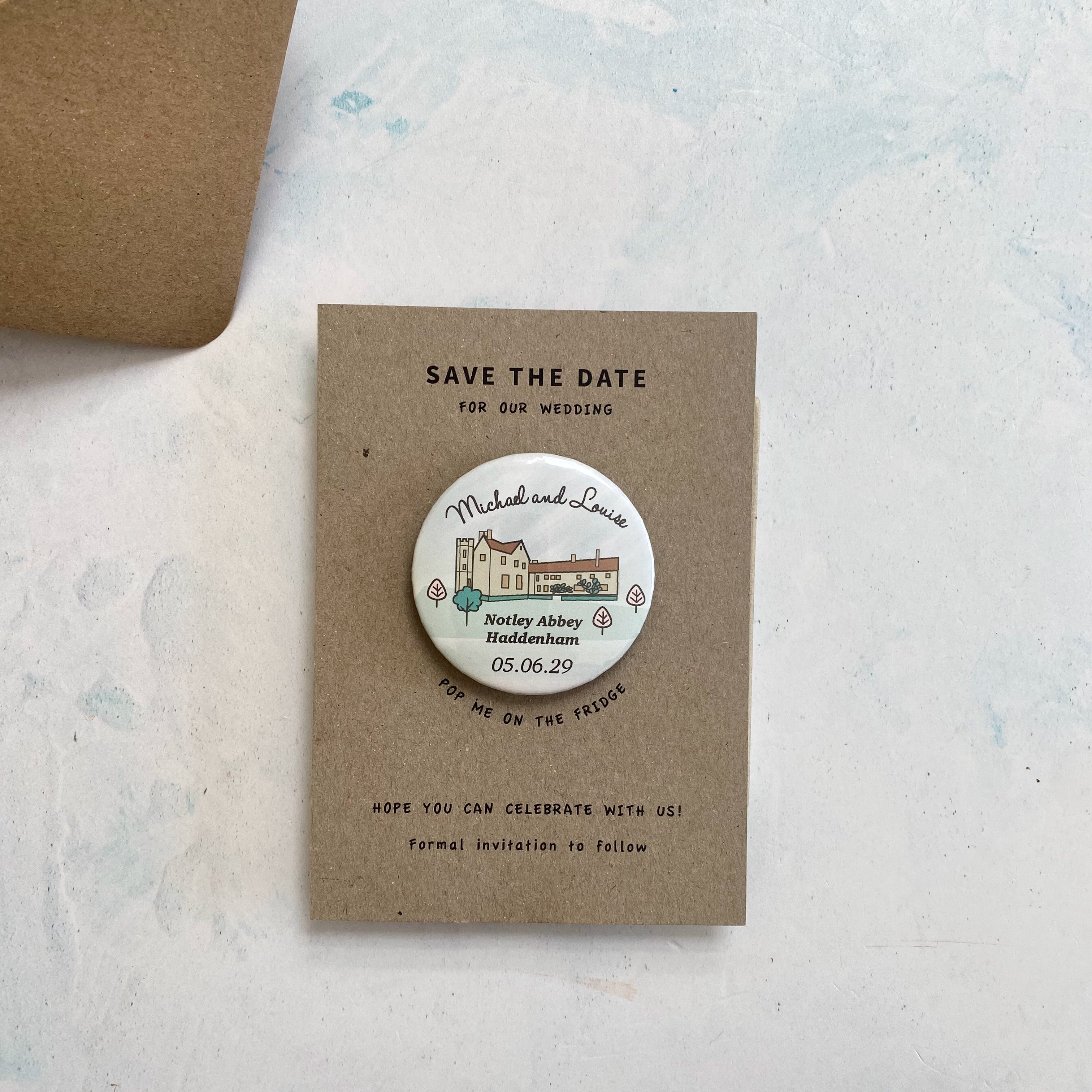 All that is required is a photo or link of your wedding venue, along with your names and wedding date.