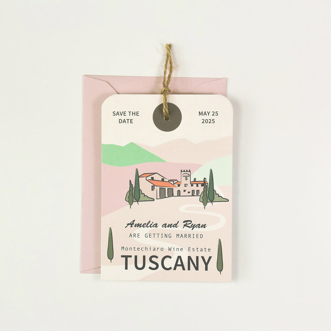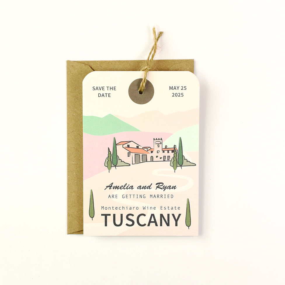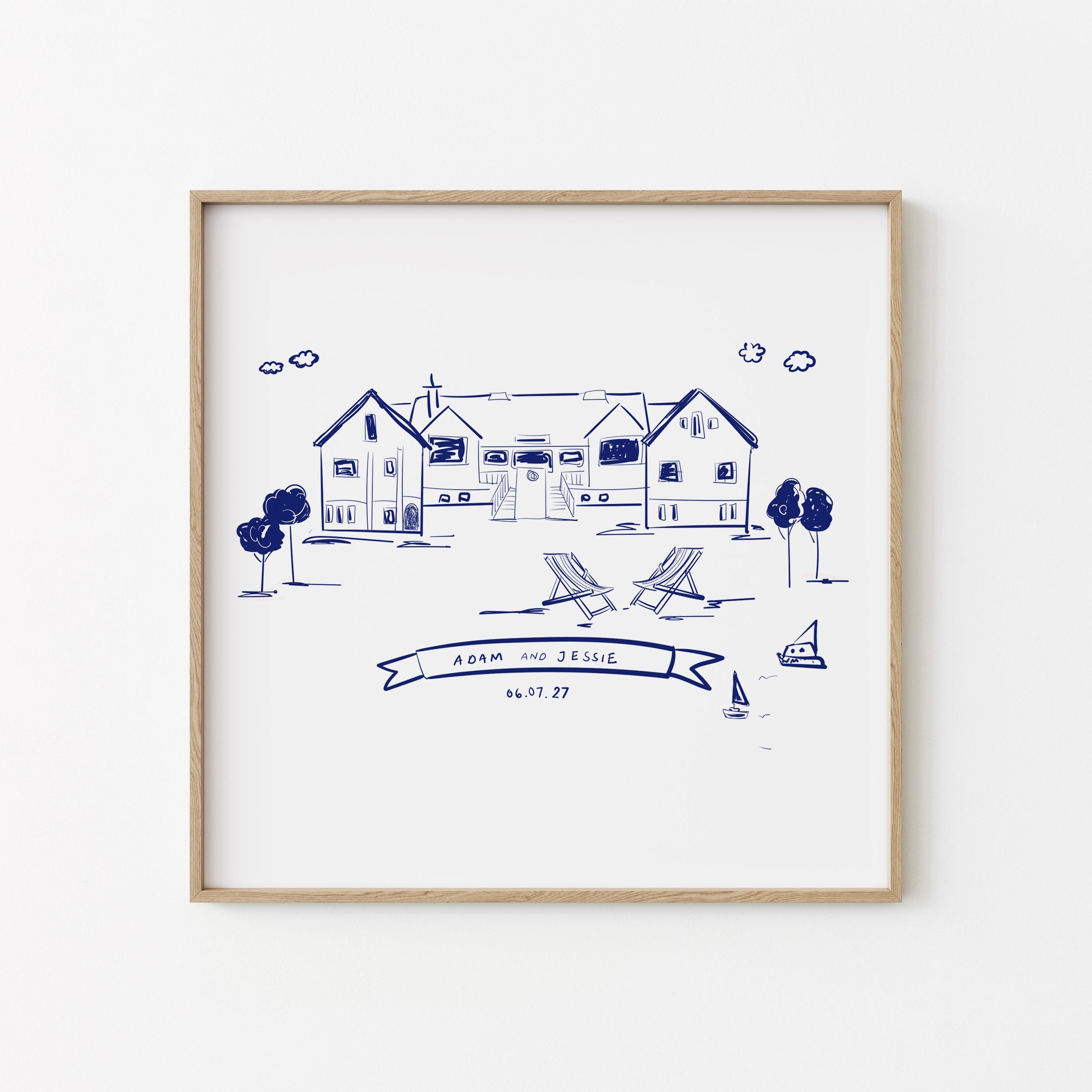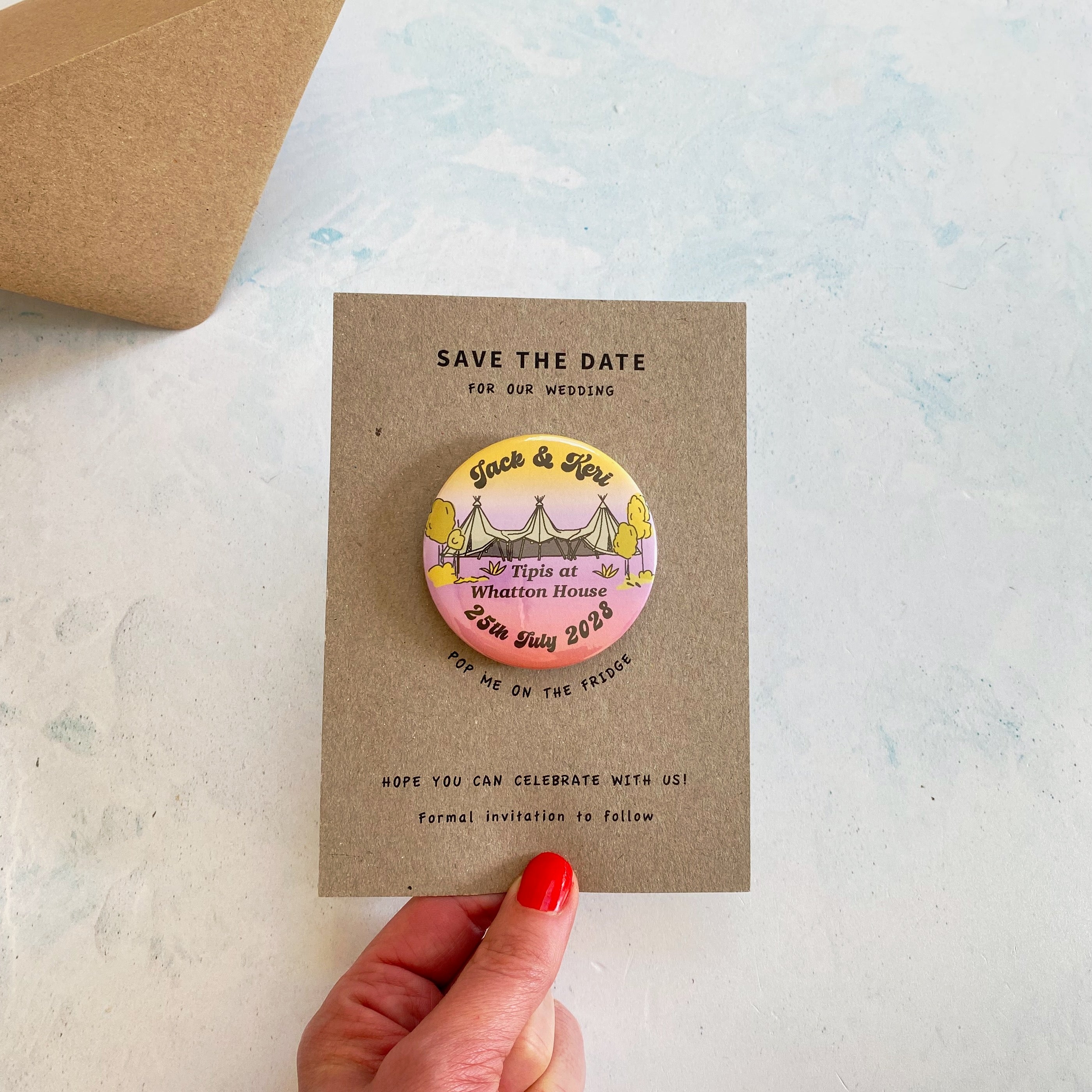All that is required is a photo or link of your wedding venue, along with your names and wedding date.
