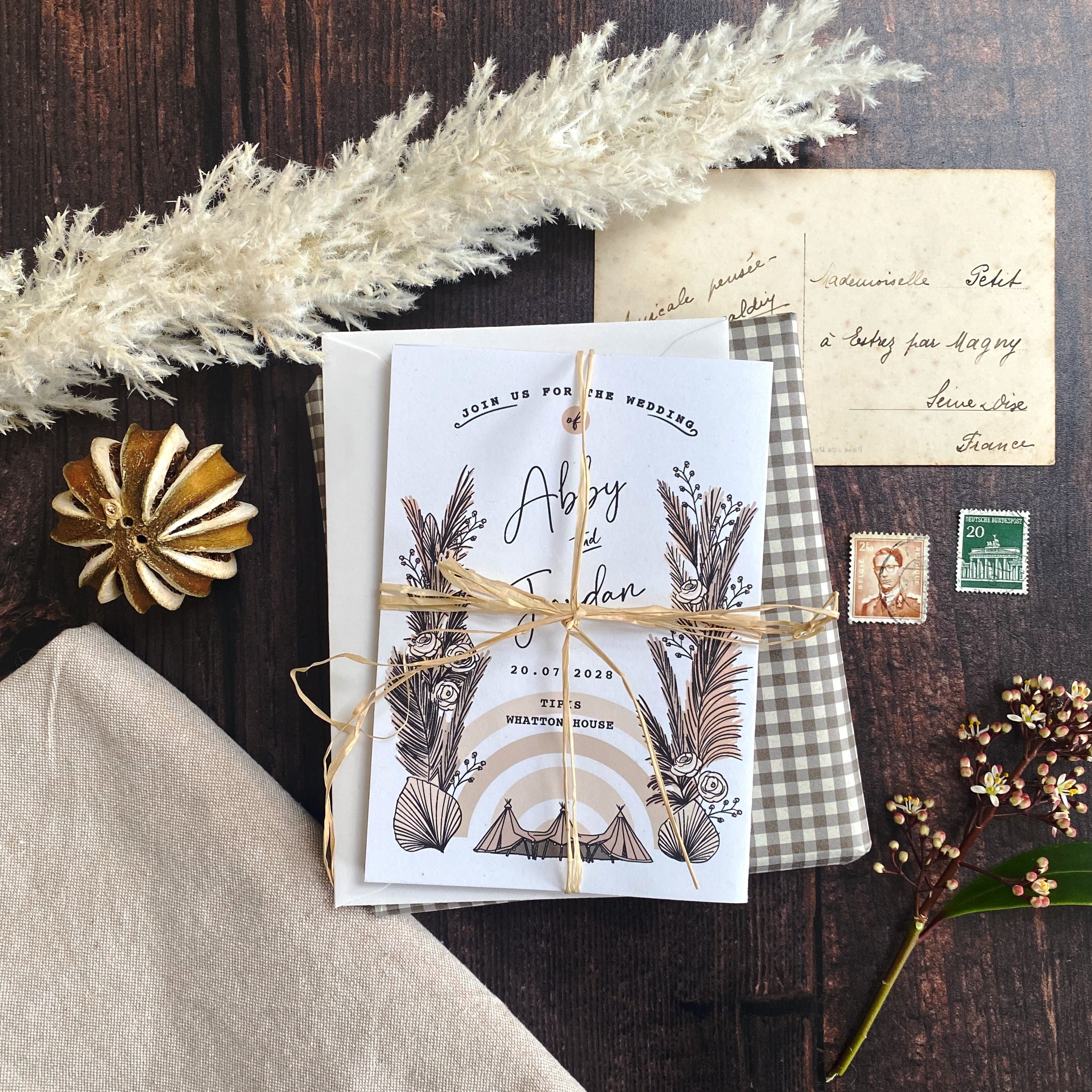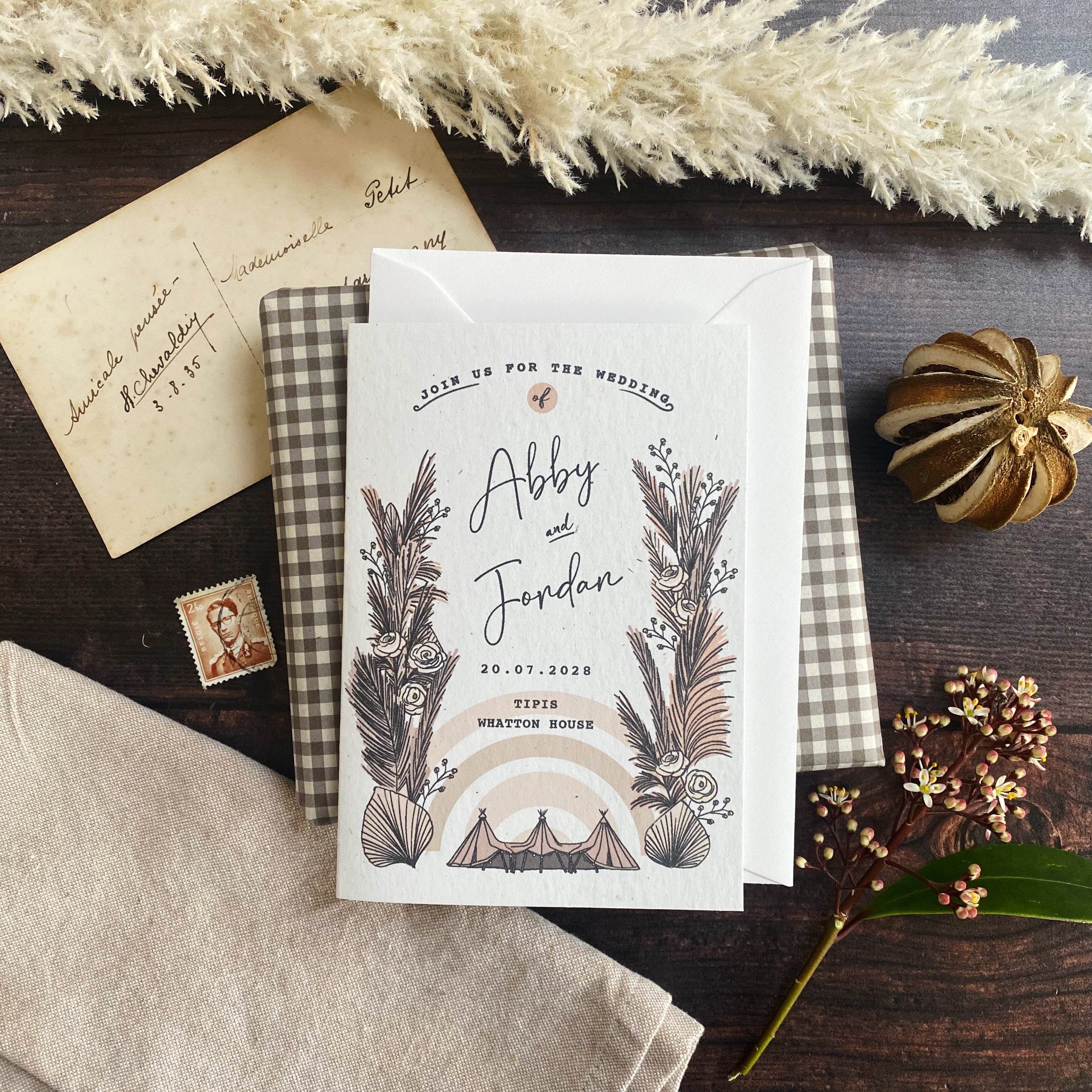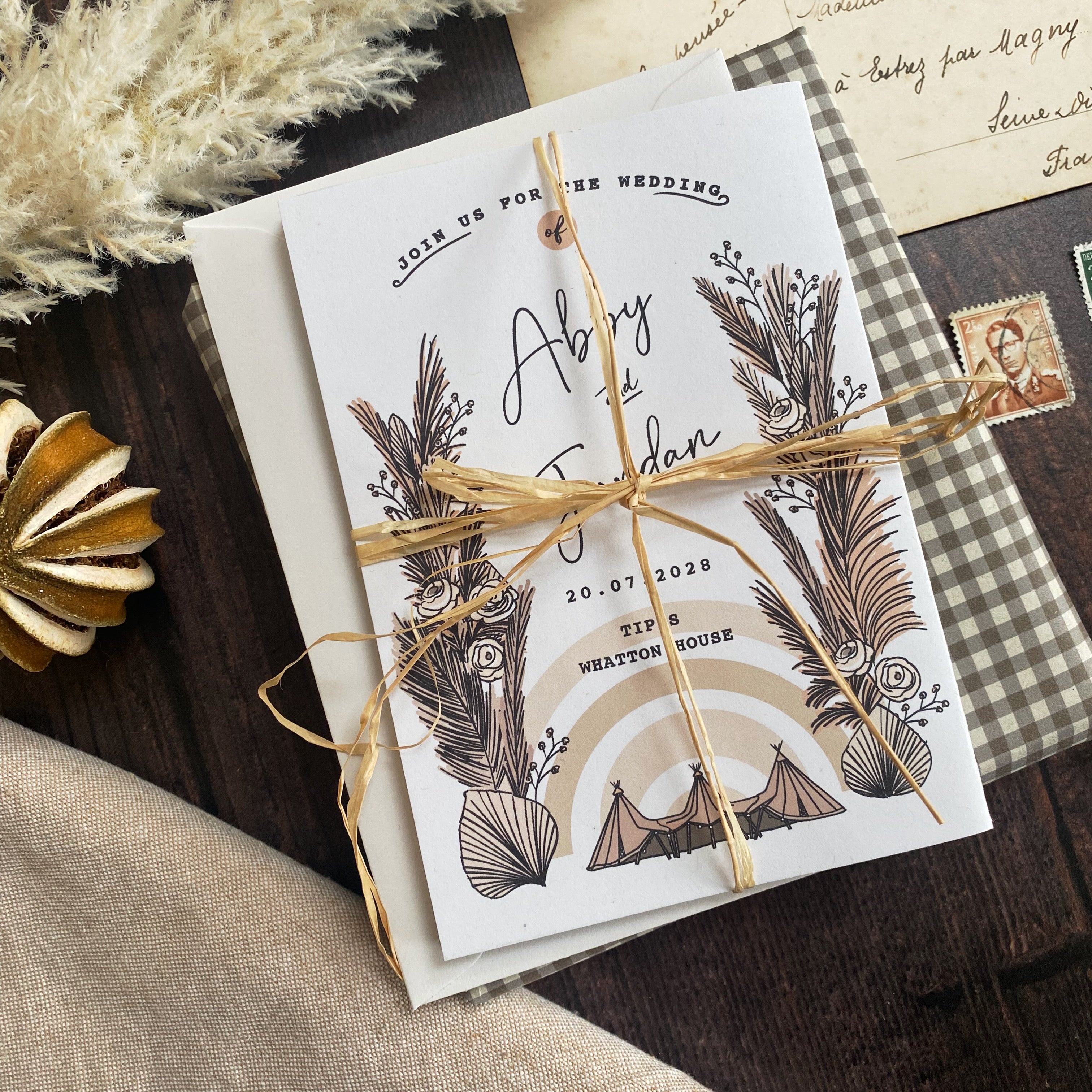 Boho Tipi Pampas Folded Wedding Invitation