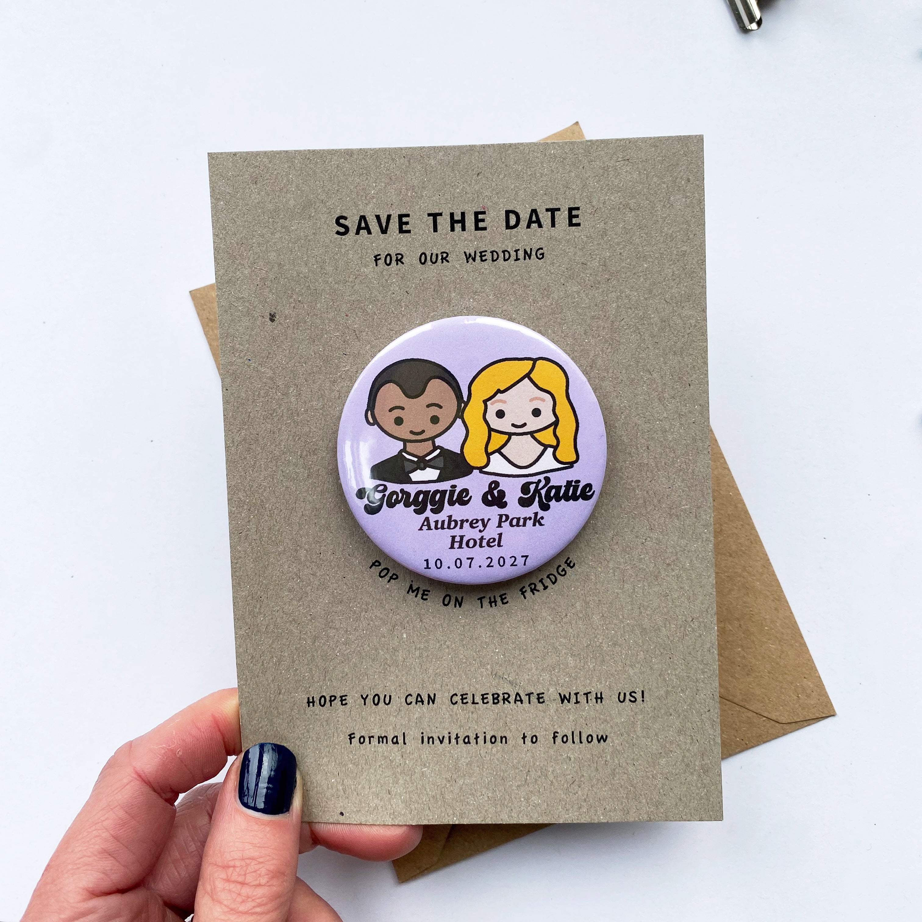 Backing card and envelope supplied with magnet.