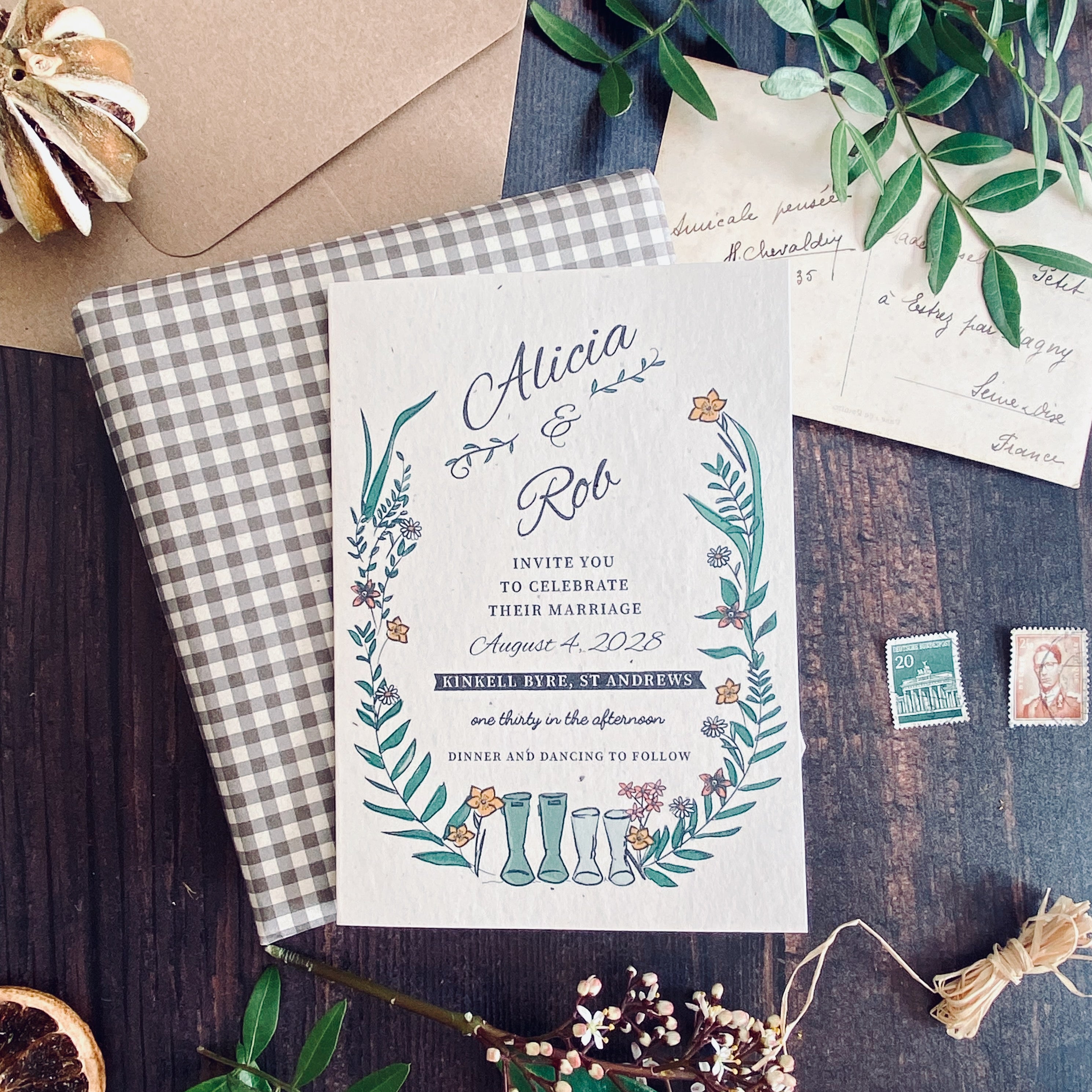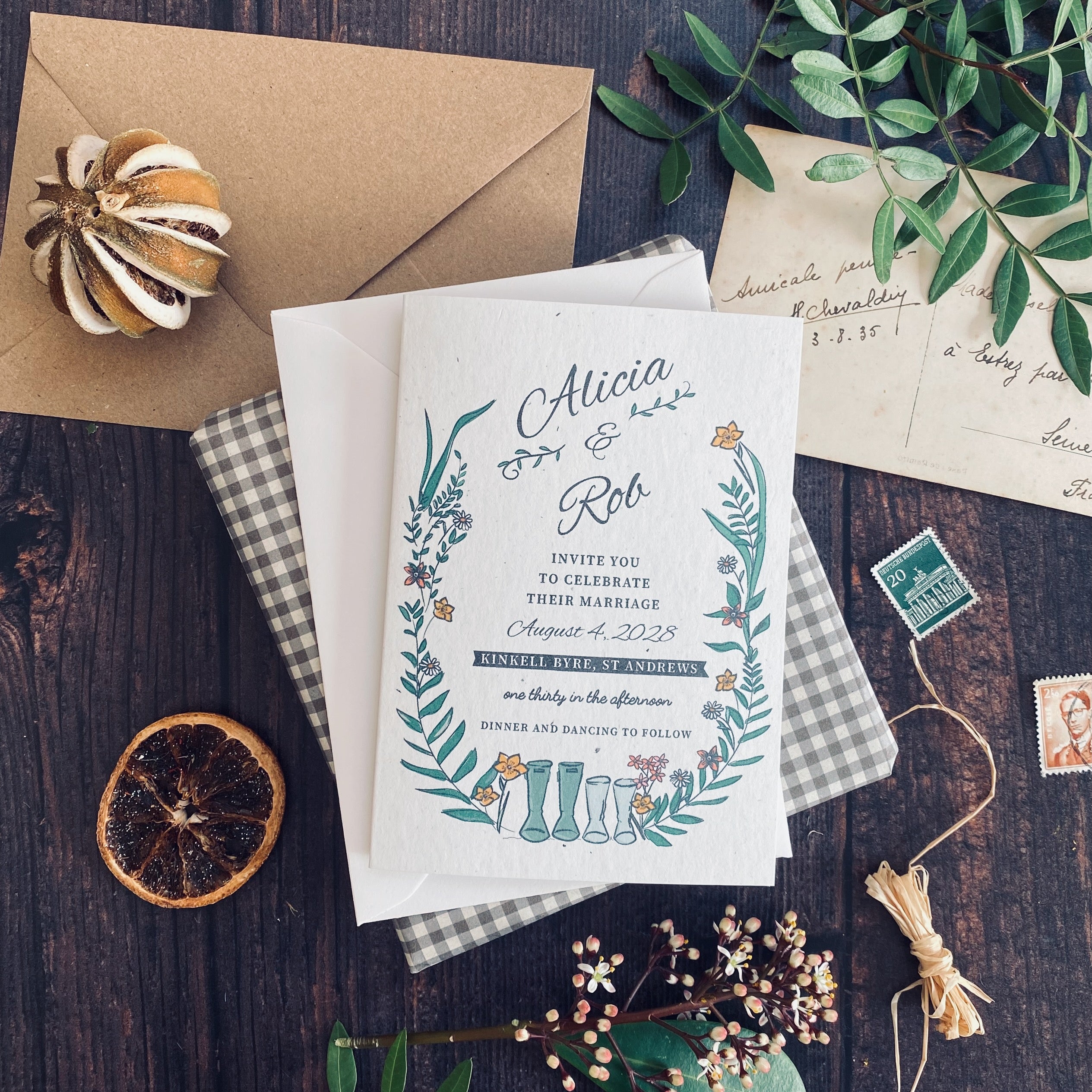 Wellie & Wildflower Folded Wedding Invitation Card