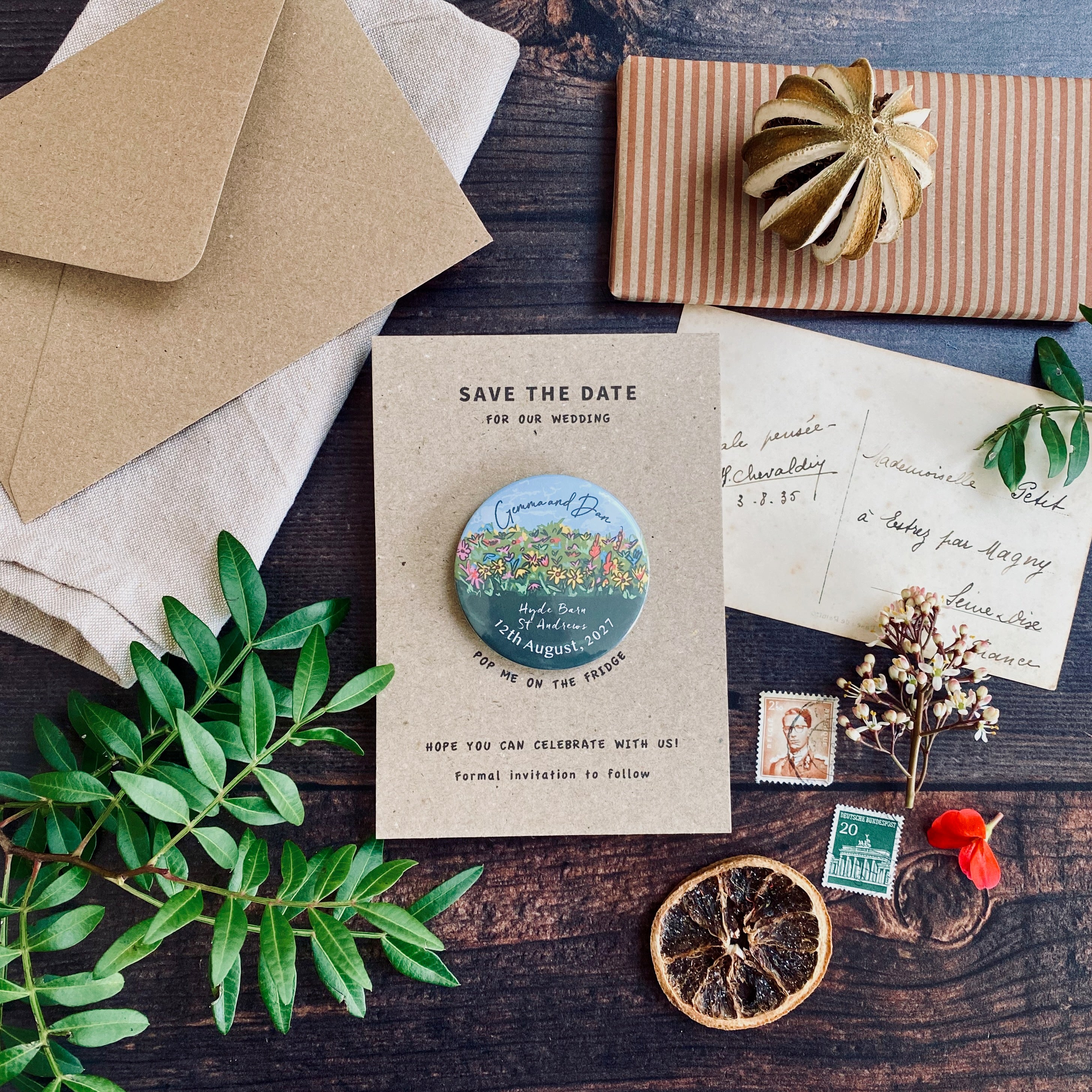 Magnet save the date wildflower Illustration.