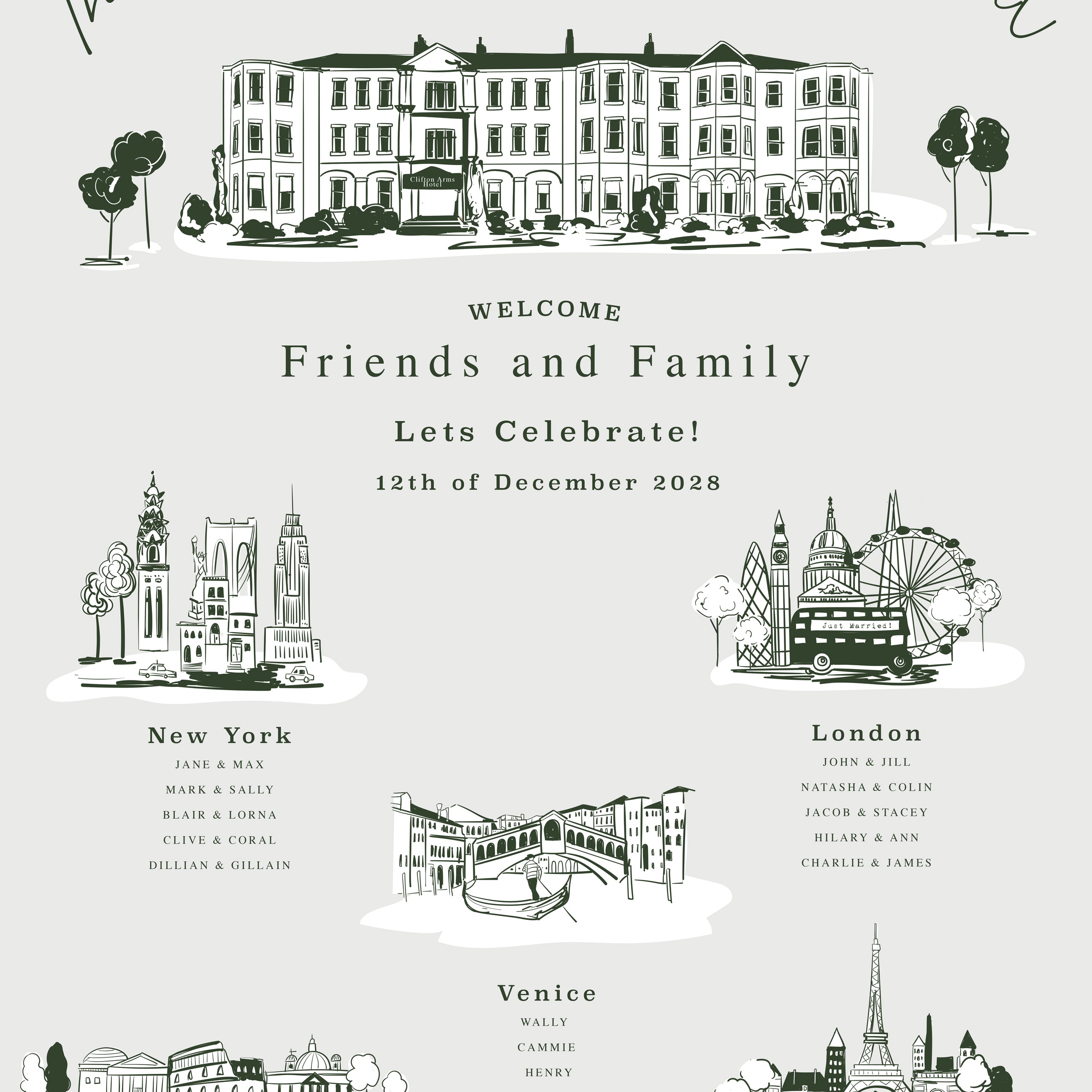 Bespoke Hand-Illustrated 'Locations' Wedding Table Plan