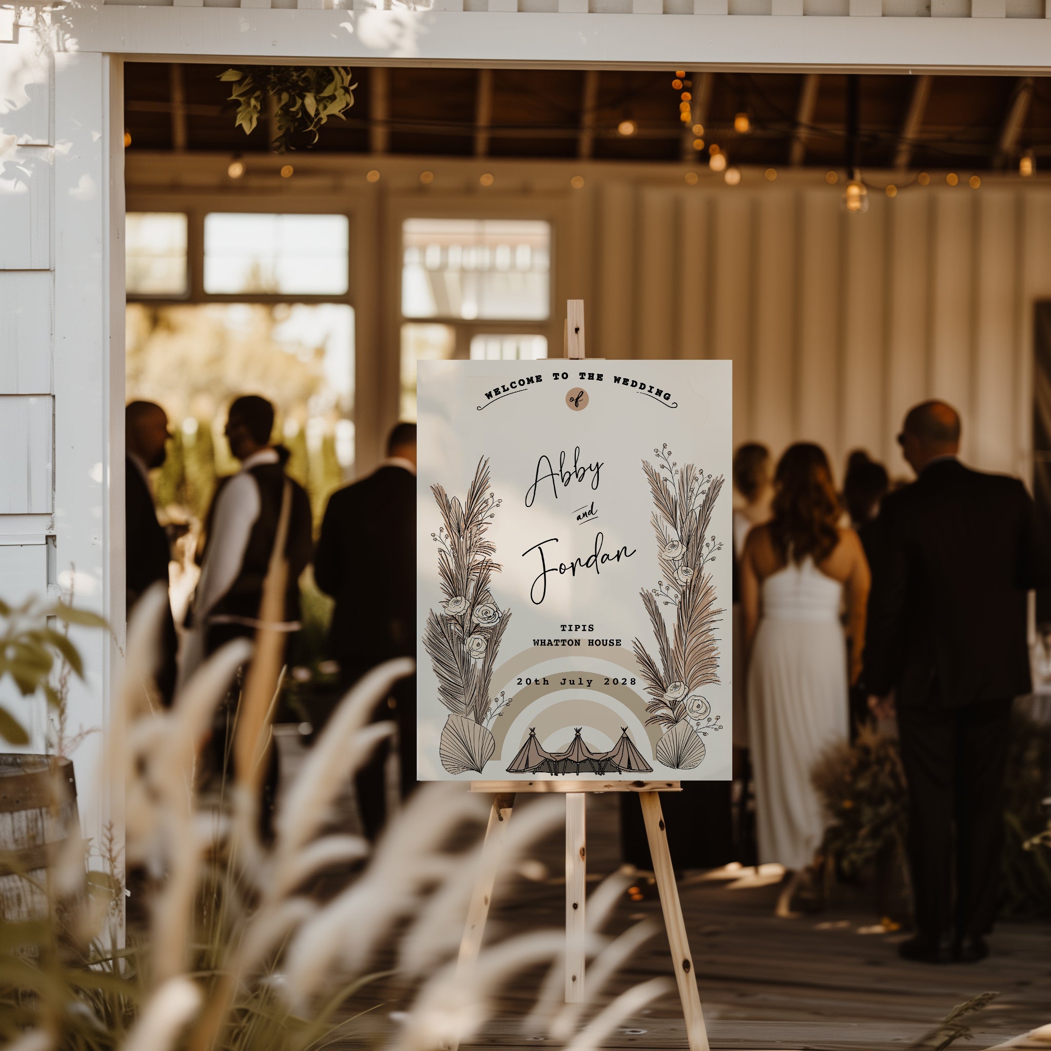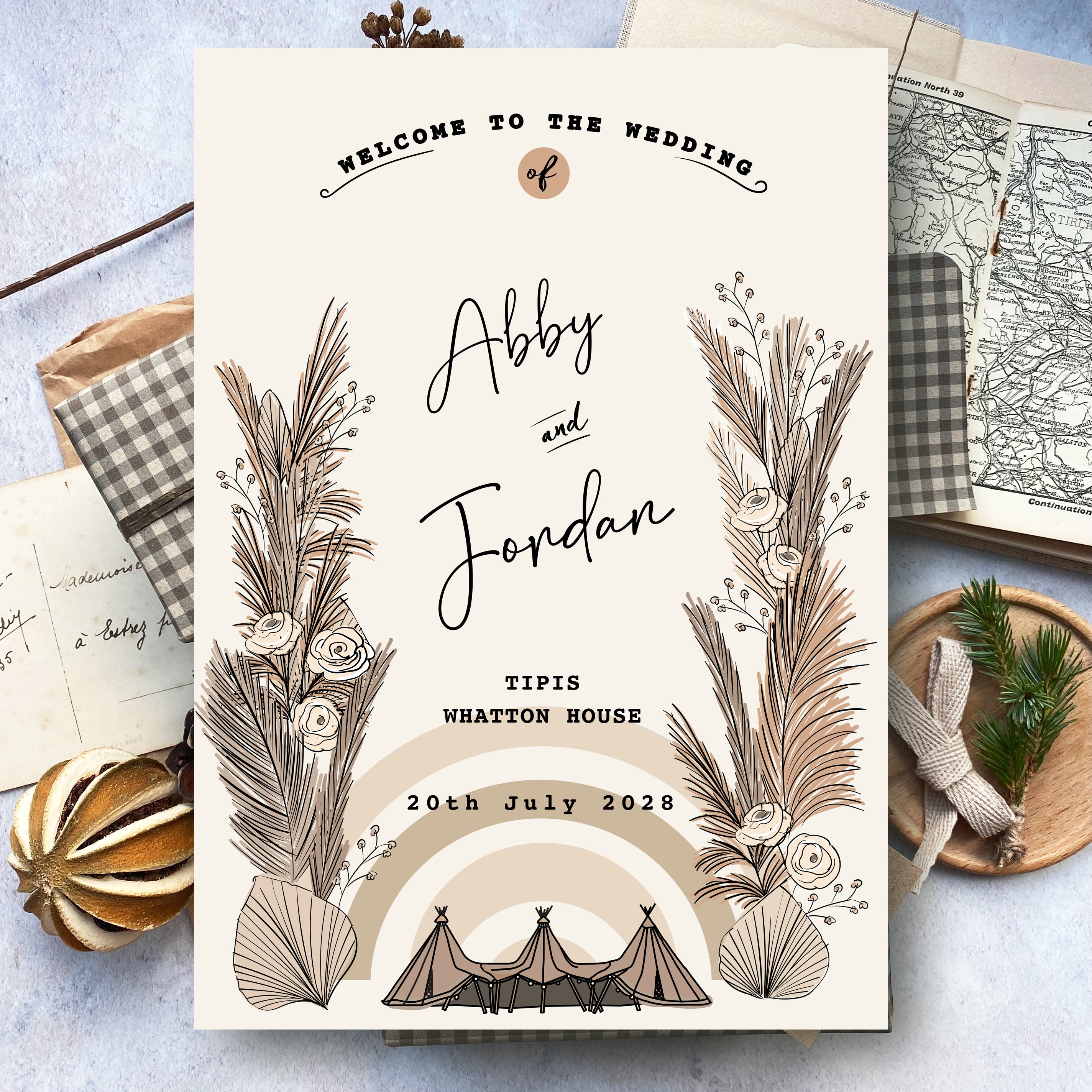 Boho Pampas Tipi Welcome Board