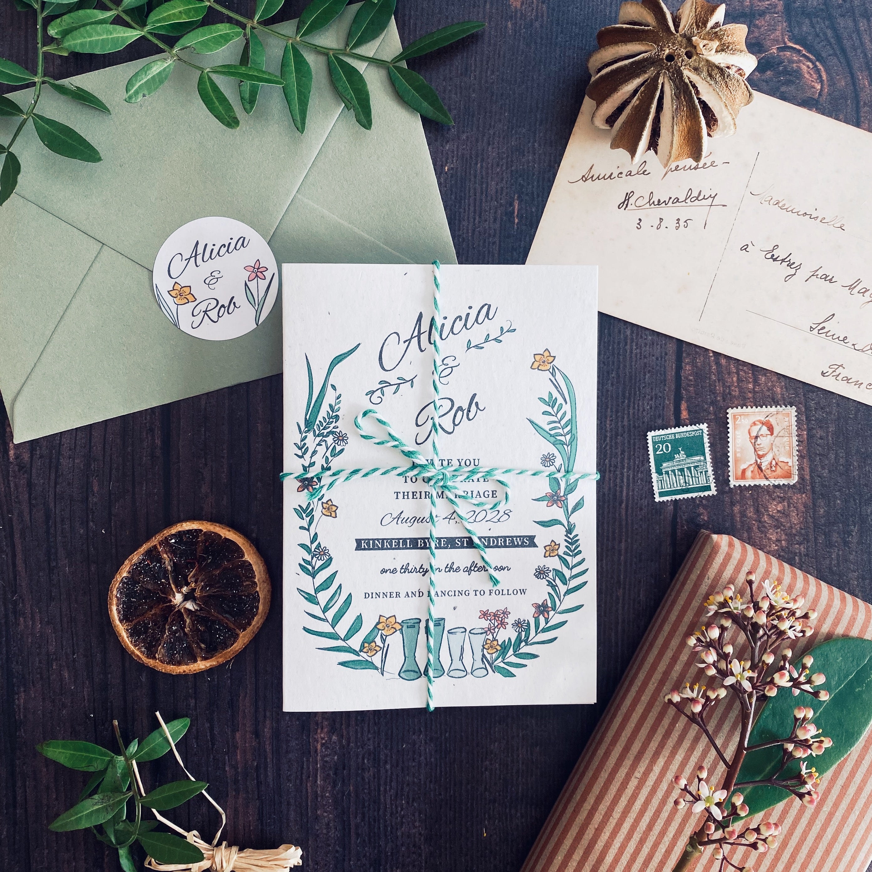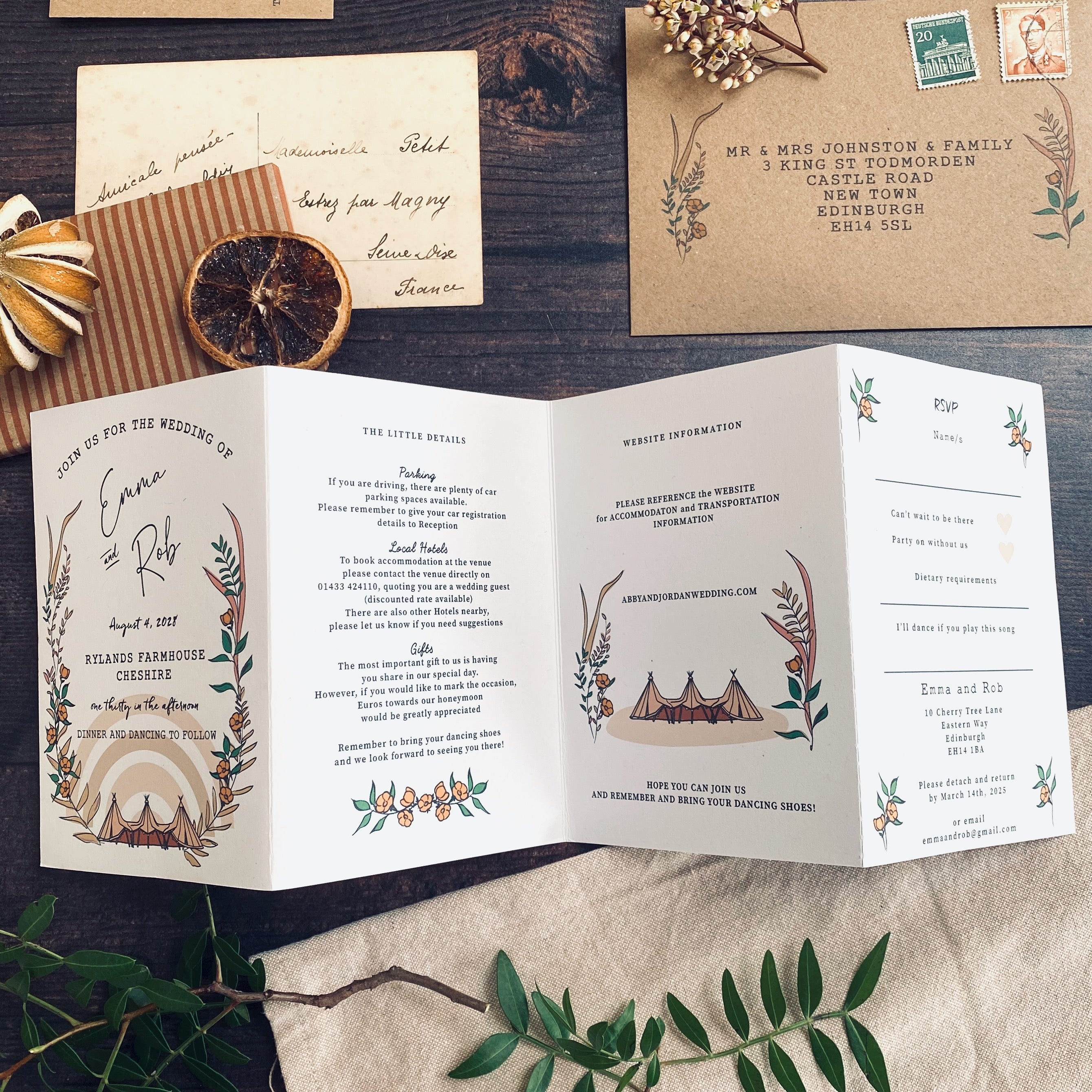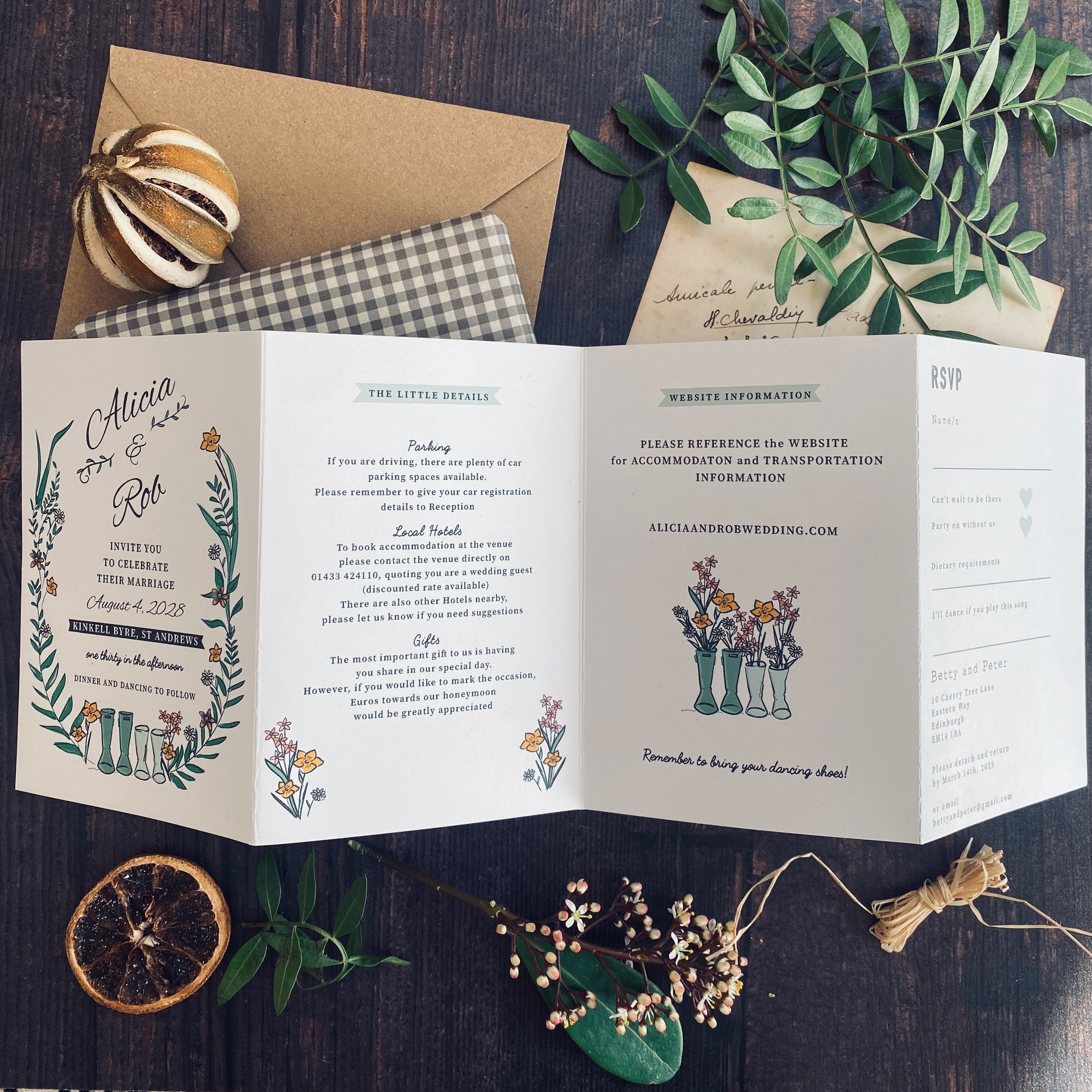 Wellie & Wildflower Four Fold Wedding Invitation