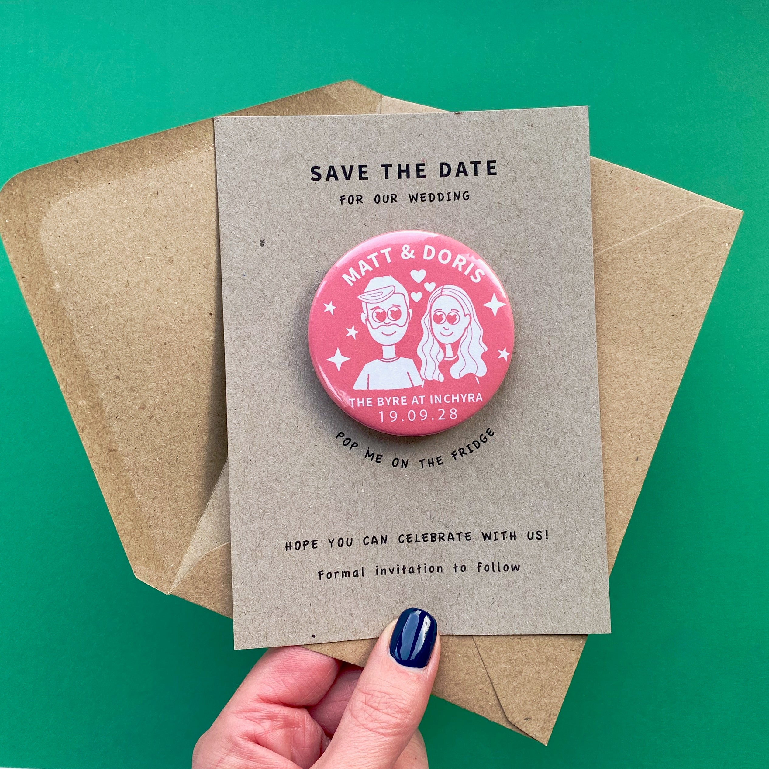 Cartoon Heart Eyes Save The Date Wedding Magnet
