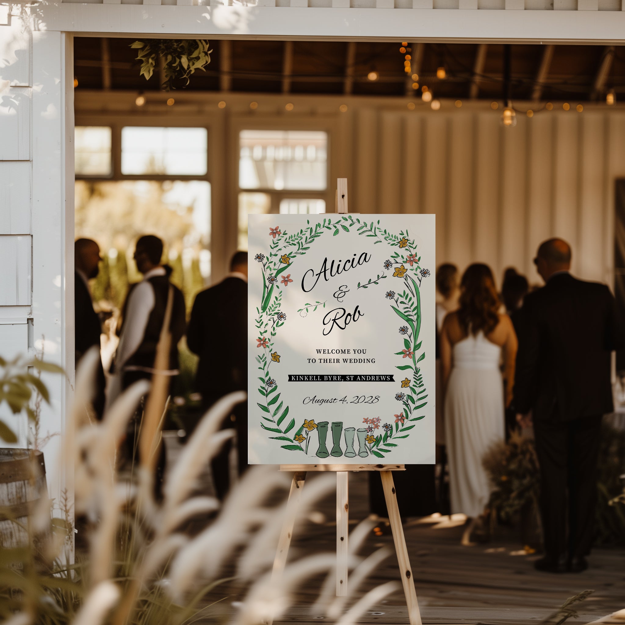 Wellie & Wildflower Welcome Sign