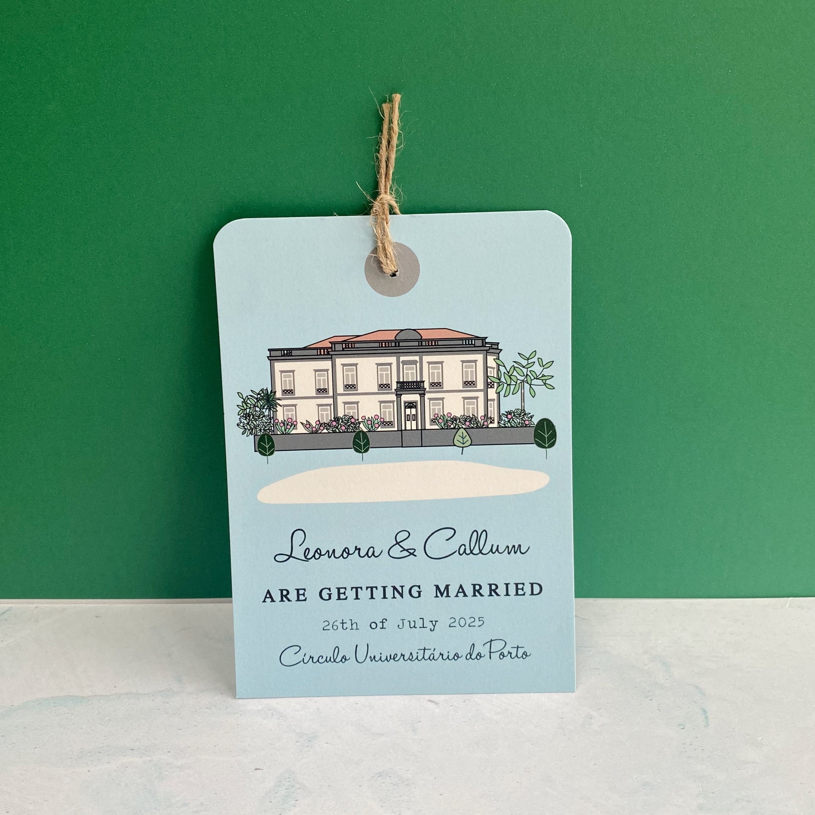 Venue Illustrated Luggage Tag Wedding Invitation