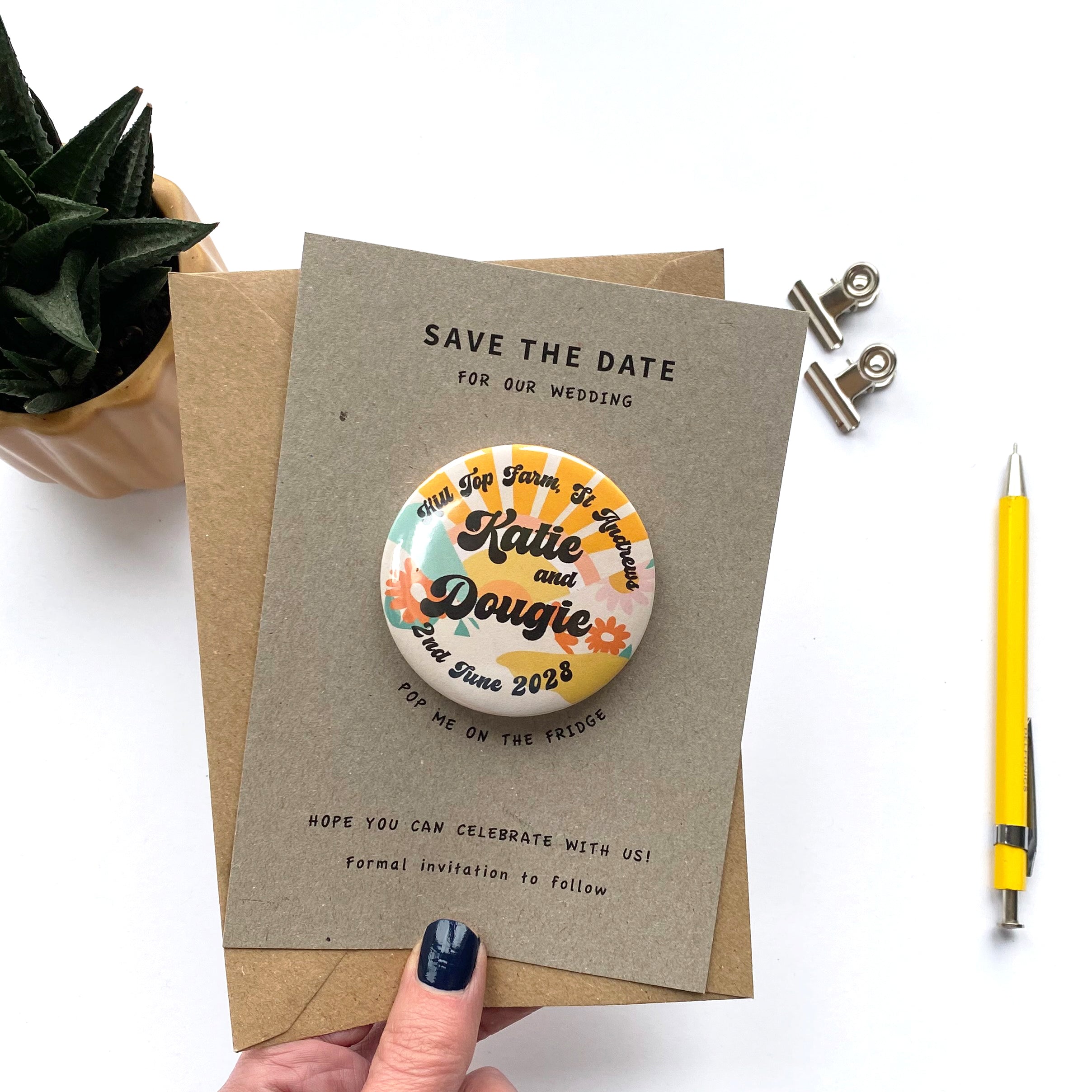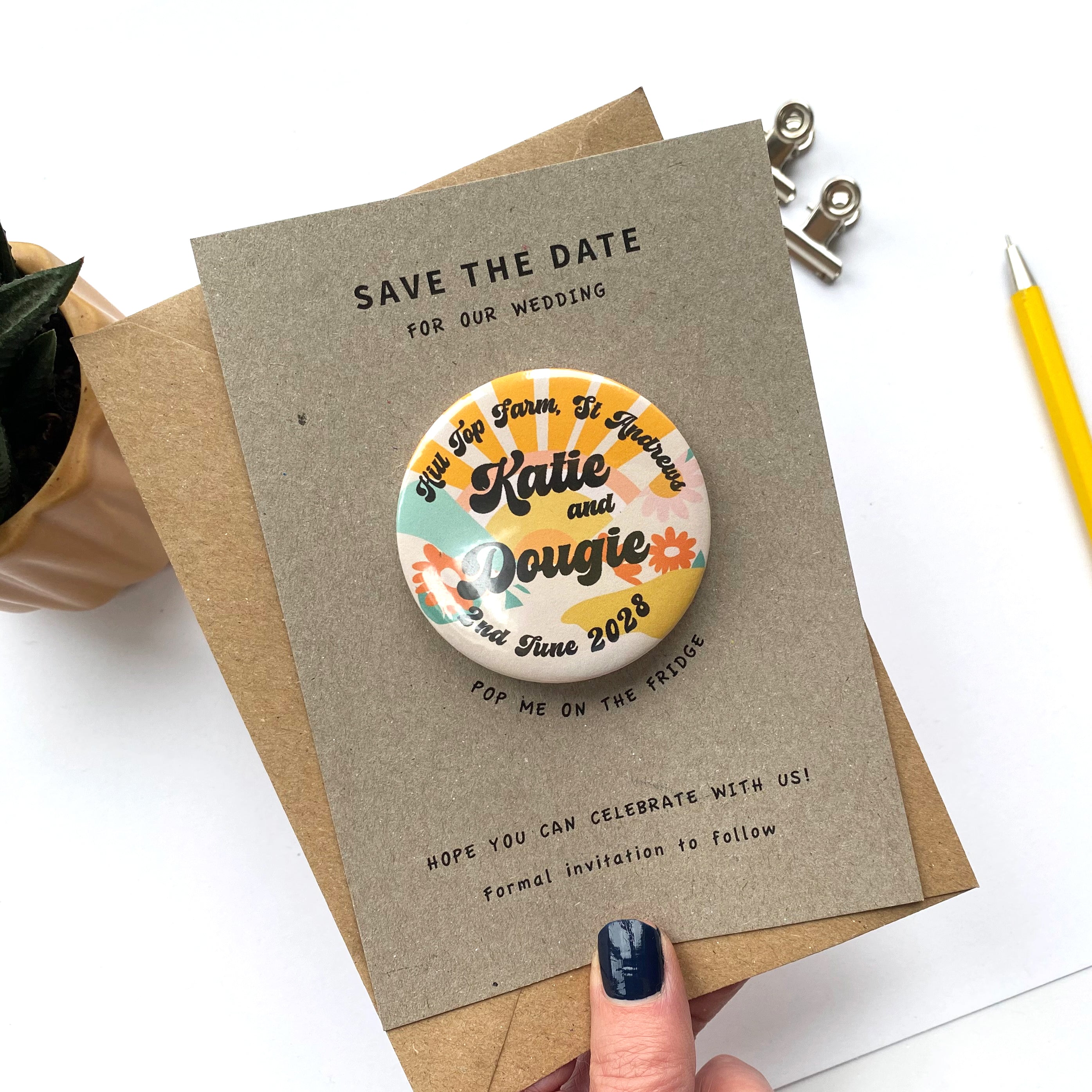 Retro Floral Colourful, Fun Wedding Save The Date Magnet