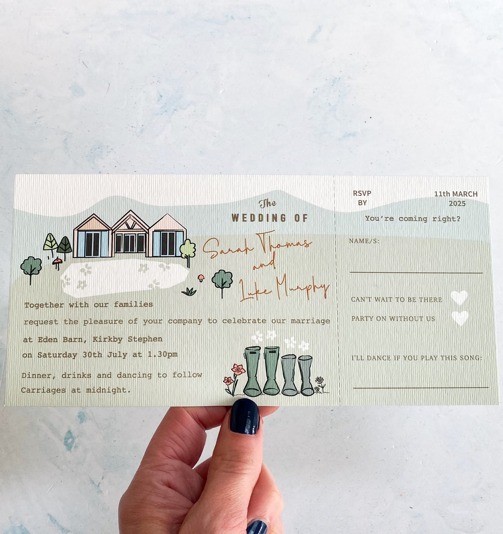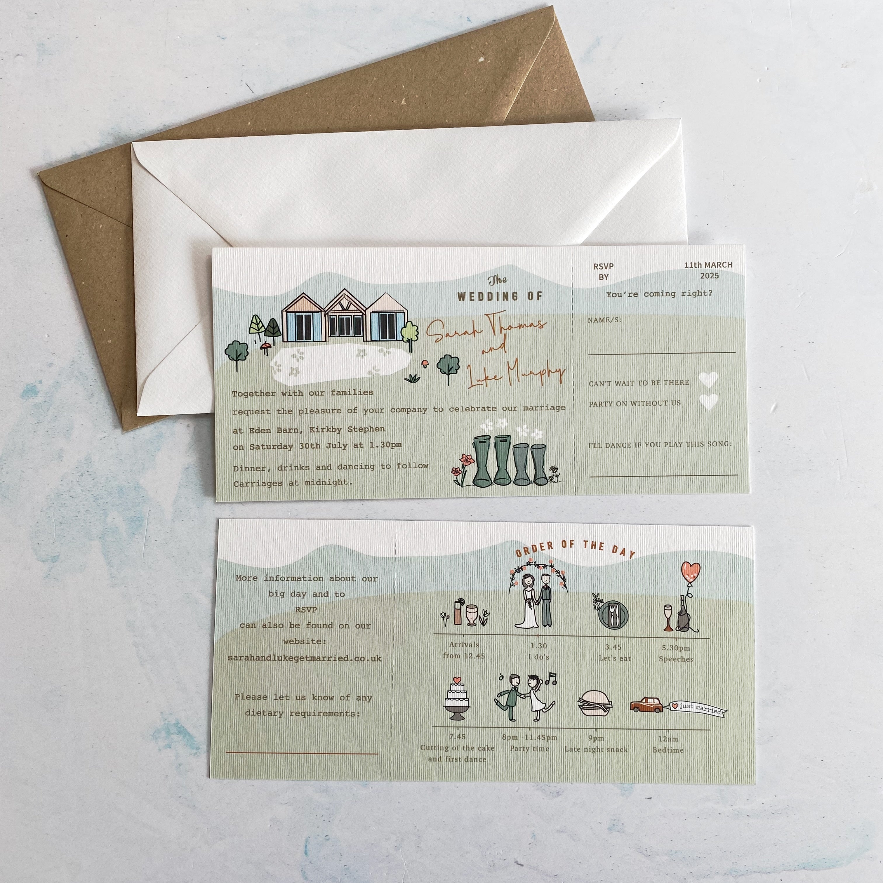 Wedding Map Bespoke Ticket Style Invitation