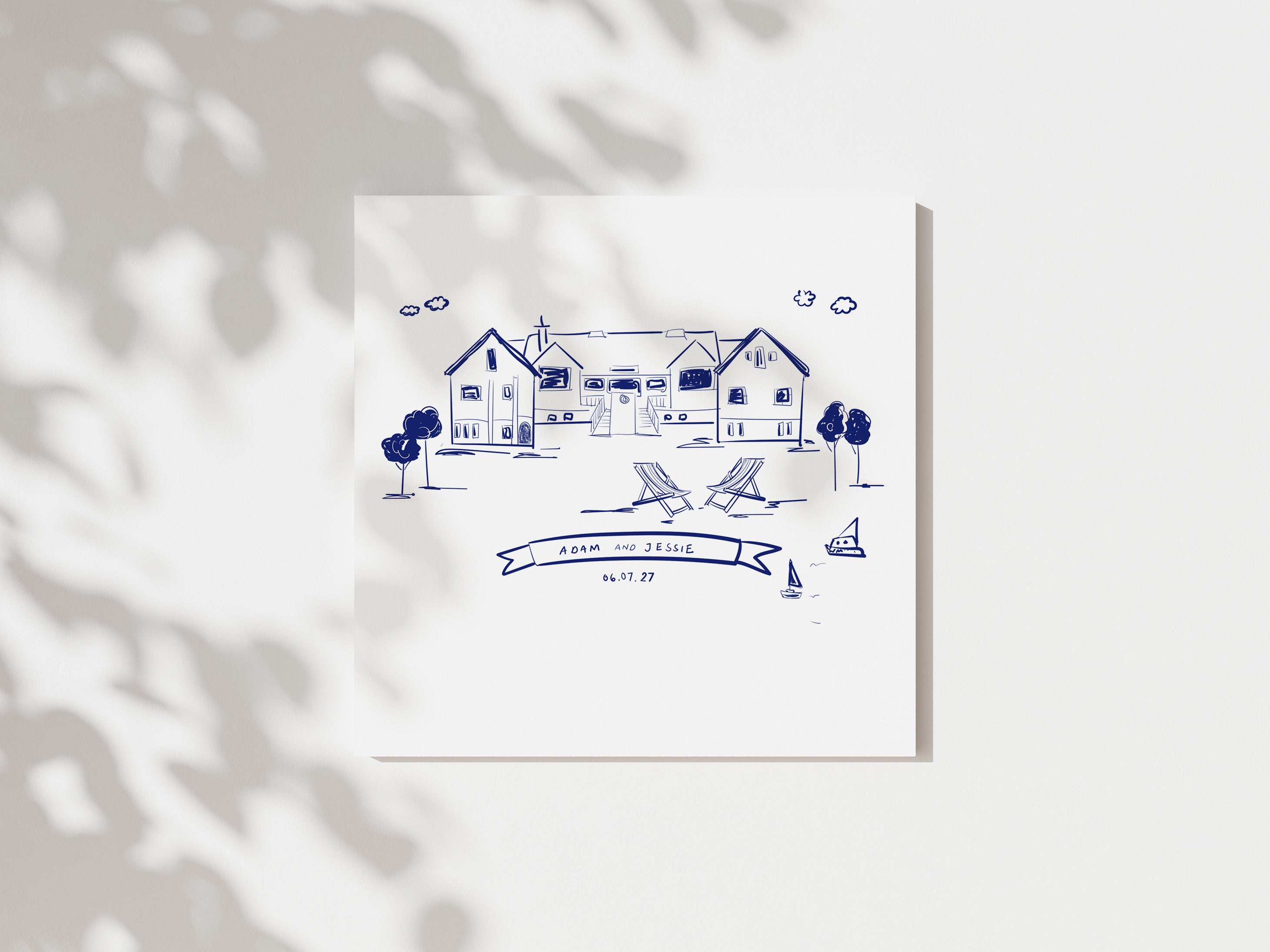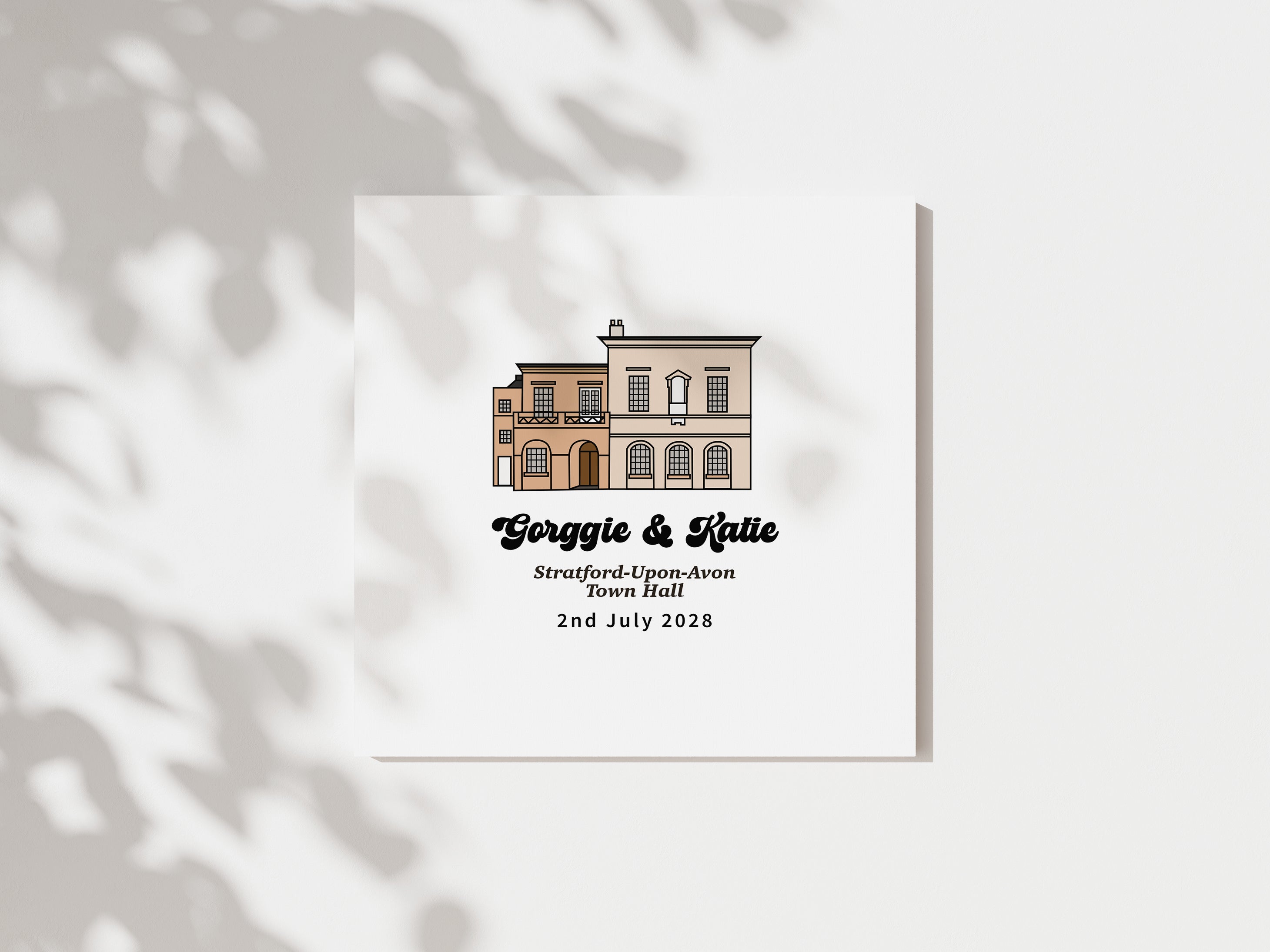All that is required is a photo or link of your wedding venue, along with your names and wedding date.